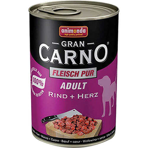 Animonda Gran Carno Sığır Etli Ve Yürekli Yetişkin Köpek Konservesi, yetişkin bir köpeğin ihtiyaç duyduğu tüm temel besinleri sağlar.