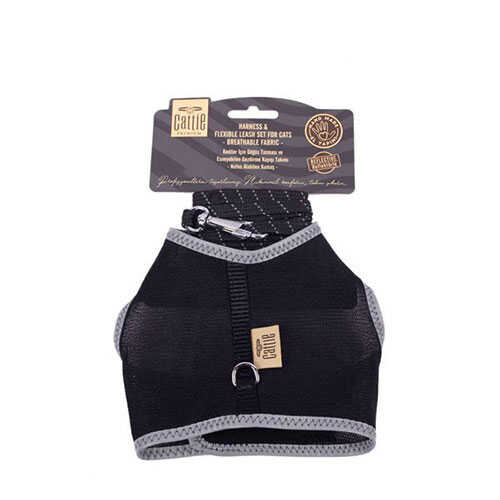 Cattie Havalı Dokuma Kedi Göğüs ve Gezdirme Tasması Large Siyah 1,5x-30-40 Cm