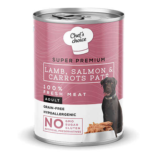 Chefs Choice Pate Kuzulu ve Somonlu Tahılsız Yetişkin Köpek Konservesi, köpeğinizin sağlıklı, mutlu ve enerjik bir yaşam sürmesi için doğal, besleyici ve lezzetli bir beslenme deneyimi sunar.