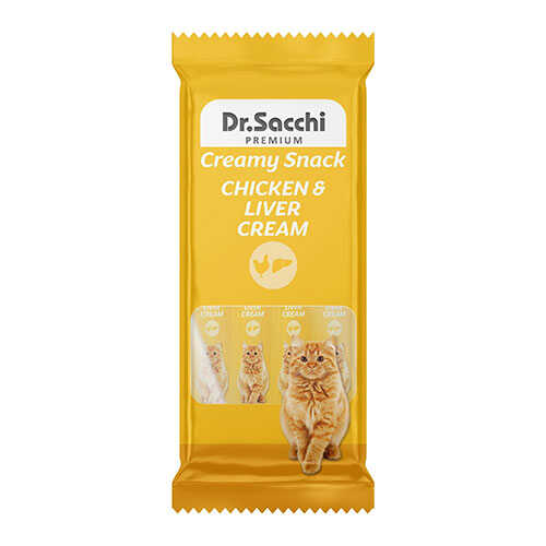 Dr.Sacchi Creamy Snack Tavuklu ve Ciğerli Sıvı Kedi Ödülü 4x14 Gr