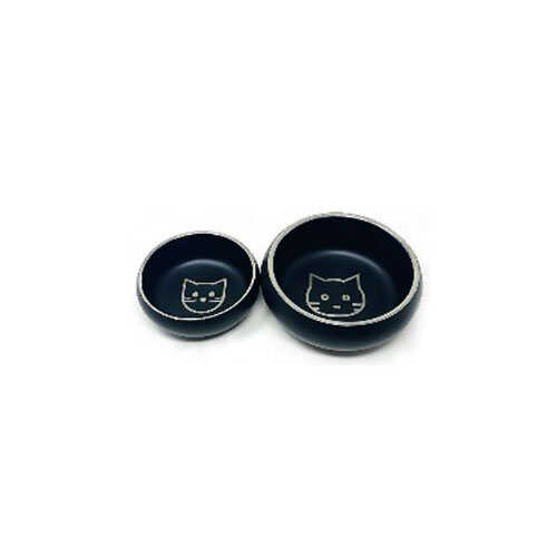 EuroDog Lazer İşlemeli Siyah Çelik Kedi Mama Su Kabı 12 cm