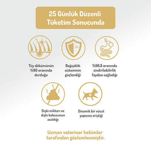 - Az tahıllı ve hypoallergenic özel formülasyon, buğday, soya, yapay tatlandırıcı, renklendirici gibi genel gıda alerjenlerinden tamamen arındırılmış olup, gıda hassasiyetlerine yatkın dostlarımız için özel olarak formüle edilmiştir.