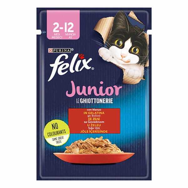 Felix Pouch Junior Sığır Etli Yavru Kedi Konservesi 26 Adet 85 Gr