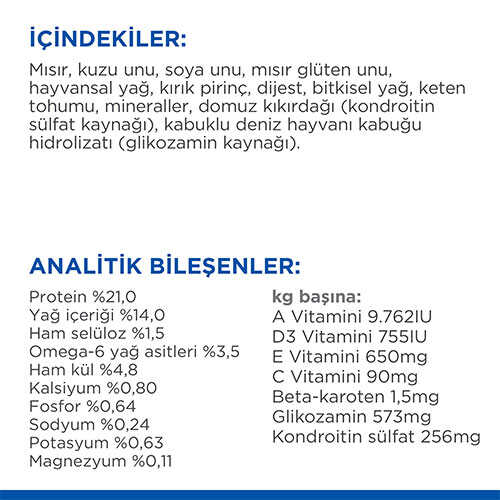 İçerdiği yüksek kaliteli protein ve L-karnitin optimal eklem ve kas sağlığı oluşumunu destekler. İçerdiği ekstra pirinç, sindirilebilirliği arttırır.