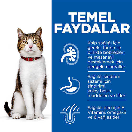 HILL'S SCIENCE PLAN Mature Adult kuru kedi maması kedilerde sağlıklı yaşlanmayı destekler. Enerji ve aktivite seviyesini desteklemeye yardımcı olan sinerjik bir karışım içerir.