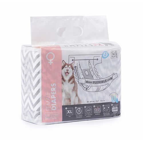 Dişi köpeklerde kızgınlık dönemi, idrar kaçırma, seyahat veya heyecan kaynaklı istenmeyen idrar durumları için M-PETS Diapers XL Külot Bez, hijyenik ve konforlu bir çözüm sunar. Süper emici yapısı ve ayarlanabilir yapışkan bantları sayesinde köpeğiniz gün boyu rahat eder ve maksimum koruma sağlar.