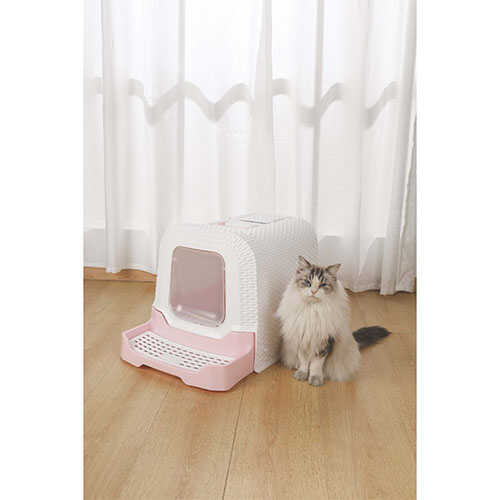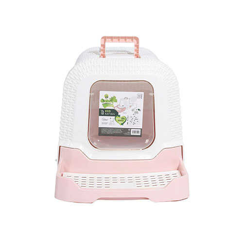M-Pets Eco Rattan Kapalı Kedi Tuvaleti Pembe 69x42x41 Cm