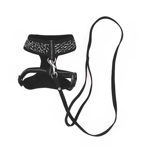 M-Pets Letsgo Kedi Göğüs Tasması ve Gezdirme Takımı Siyah 30-42 Cm