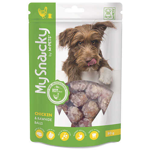 M-Pets My Snacky Tavuk ve Sığır Derili Top Köpek Ödül Maması 80 Gr, köpeğinizin hem eğlenmesini hem de ağız sağlığının korunmasını sağlayan ideal bir ödül seçeneğidir.