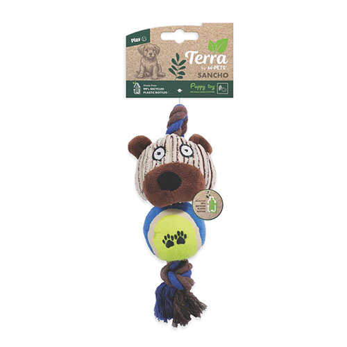Sancho köpek oyuncağı, geri dönüştürülmüş elyaf dolgu ile üretilmiştir. Dayanıklı yapısı sayesinde uzun süreli kullanım sunarken, çevreye duyarlı köpek oyuncakları arasında öne çıkar. Köpeğinizin diş ve diş etlerine zarar vermeyen yumuşak dokusu ile güvenli oyun imknı sağlar.