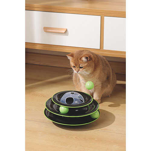 3 katlı kule tasarımı sayesinde her seviyede dönen toplar, kedinizin ilgisini sürekli canlı tutar. Her katta yer alan döner toplar, patilerle itildiğinde hareket ederek kedinizin avlanma içgüdüsünü harekete geçirir ve uzun süreli oyun sağlar.