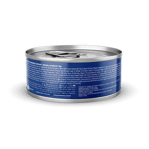 Yüksek Protein İçeriği:Tavuk ve midye kombinasyonu, kedinizin kas gelişimini destekler ve enerji ihtiyacını karşılar.