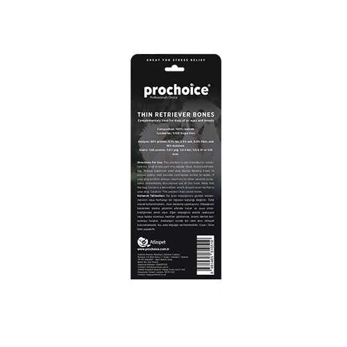 Her Yaş ve Cins İçin Uygun ProChoice Thin Retriever Bones, tüm ırk ve yaş gruplarındaki köpekler için uygun, tahılsız ve sindirimi kolay bir ödüldür.