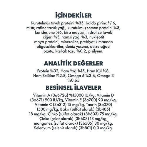 Hamsi yağı ve hidrolize tavuk ciğeri ile zenginleştirilen formül, hem besin değerini hem de lezzeti artırır.Sindirim Dostu ve Bağırsak Sağlığı