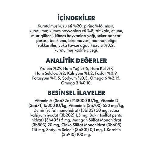 Kurutulmuş kuzu eti ve doğal yaban mersini içeriği ile bağışıklık sistemini destekler, kemik ve kas gelişimine yardımcı olur. Ayrıca, dengeli vitamin ve mineral katkıları sayesinde yavru köpeğinizin günlük enerji ihtiyacını karşılayarak sağlıklı ve güçlü bir büyüme süreci sağlar.