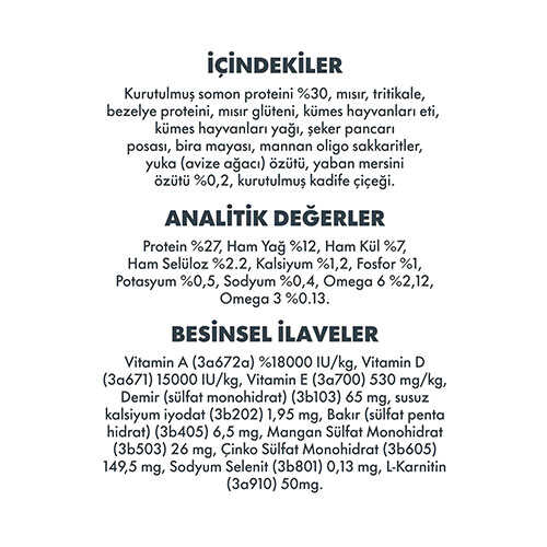 - Omega 3 & Omega 6 yağ asitleri: Sağlıklı deri, parlak tüyler ve genel metabolizma desteği sağlar.