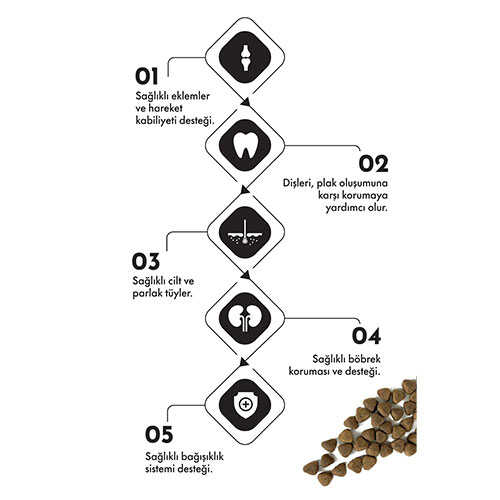 - Yüksek enerji sağlayan formül: Orta ve büyük ırk köpeklerin günlük enerji ihtiyacını karşılar.