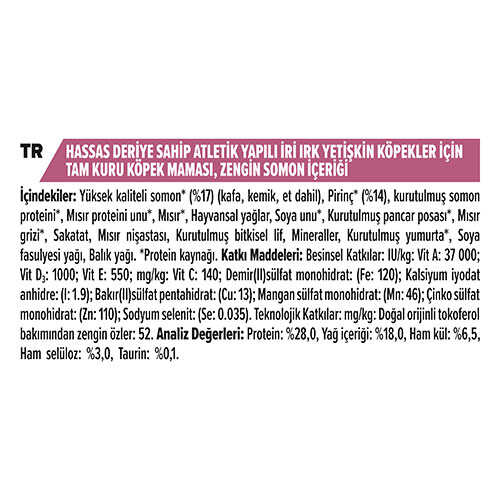 Büyük Irk Atletik Köpekler İçin Hassas Cilt ve Sağlıklı Beslenme Çözümü!