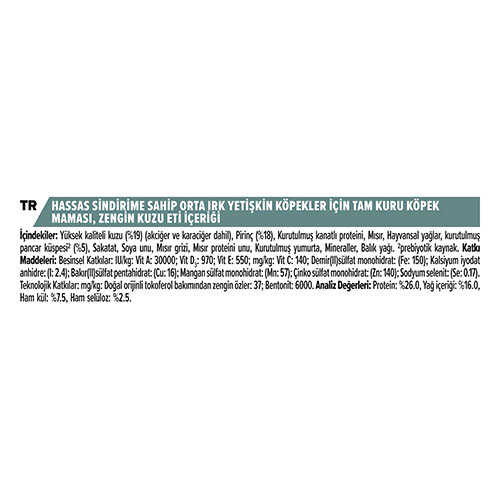 Pro Plan Medium Adult Sensitive Digestion Kuzulu Orta Irk Yetişkin Köpek Maması, sindirim hassasiyeti yaşayan orta ırk köpekler için özel olarak formüle edilmiştir. Kuzulu içerik, köpeğinizin sindirim sistemini rahatlatırken, yüksek kaliteli protein kaynağı sunar. Yüksek sindirilebilirlik oranı sayesinde, köpeğinizin midesi ve bağırsakları daha sağlıklı çalışır.