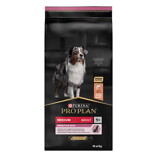 Köpeğinizin sağlığını korurken aynı zamanda mutlu ve enerjik bir yaşam sürmesini sağlayan Pro Plan Medium Sensitive Skin Adult ile tanışın!