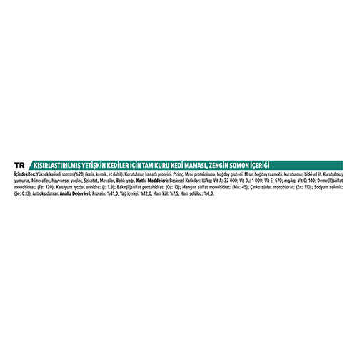 - Düşük Yağ Oranı: Kısırlaştırılmış kedilerin kilo almasını önlemek amacıyla düşük yağ içeriği ile formüle edilmiştir.