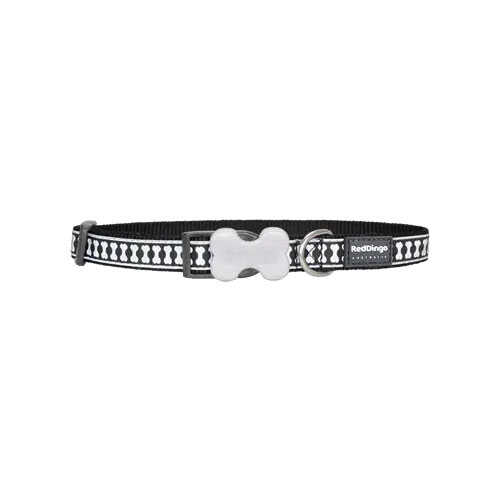 Reddingo Reflektörlü Kemik Desenli Siyah Köpek Boyun Tasması Small 15 Mm 24-36 Cm