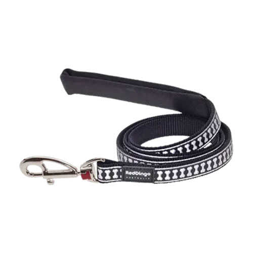 Reddingo Reflektörlü Kemik Desenli Siyah Köpek Uzatma Tasması Large 25 mm 1,2 m