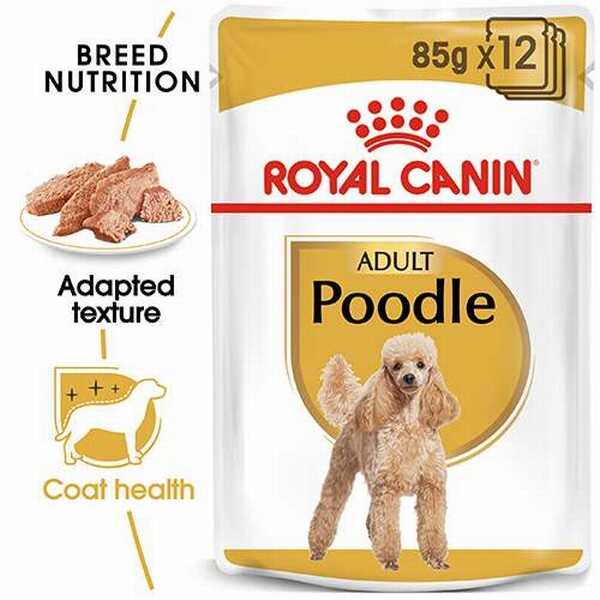 Poodle köpekleri, bazen yediklerini seçici şekilde kabul ederler. Royal Canin Poodle Pouch, Poodle ırkının özel damak zevkine hitap etmek için uyarlanmış bir kıvama sahip olup, iştahı açmak ve mamanın tüketimini kolaylaştırmak için mükemmel bir çözümdür.