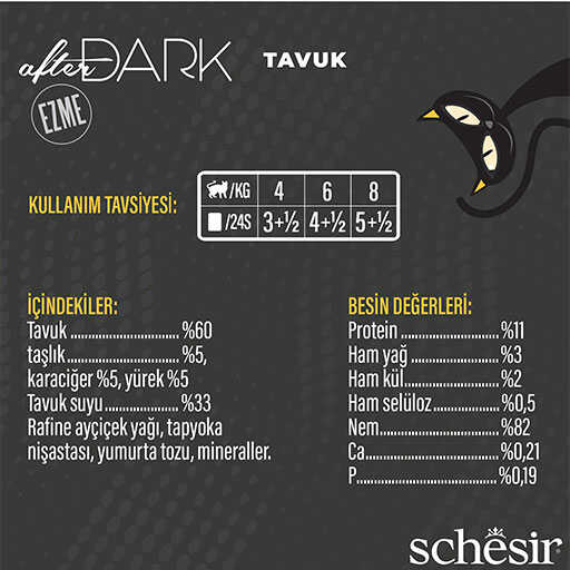Schesir After Dark Pate Tavuk Etli Tahılsız Yetişkin Kedi Konservesi 12 Adet 80 Gr
