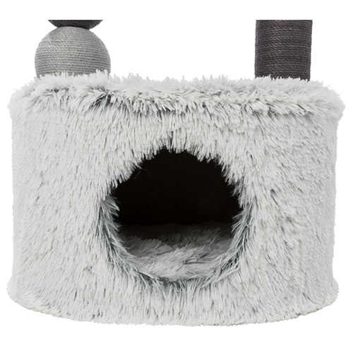 Trixie Kedi Tırmalama ve Yatağı 73cm GriÜst tarafı ve alt iç tarafı kedi yatağı olan kedi tırmalama ve oyun evidir. Tırmalama alanları jut, diğer tüm alanlar uzun tüylü peluştur. Kedi yatakları çıkarılabilir ve elde yıkanabilir.