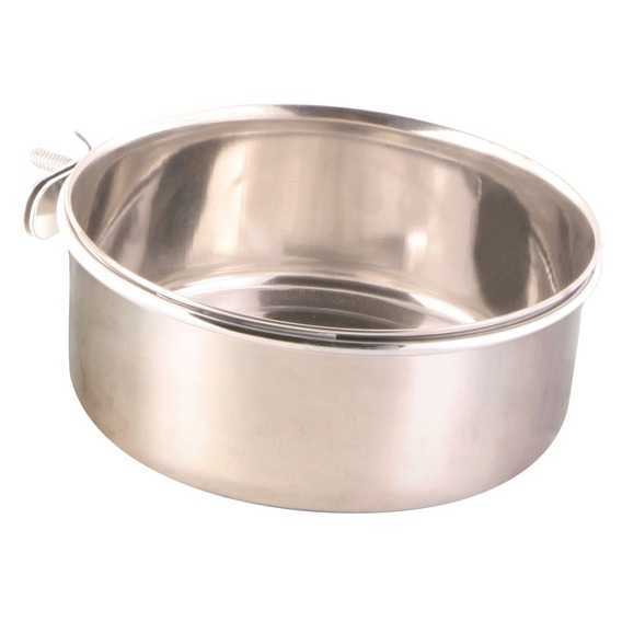 Trixie Papağan Paslanmaz Kap 300ml-9cmMuhabbet kuşları veya papağanlar için yemlik vb için kullanılabilecek paslanmaz çelik askılı kaptır. Düzenli yıkandığı zaman temizliği kolaydır ve bakteri tutmaz.