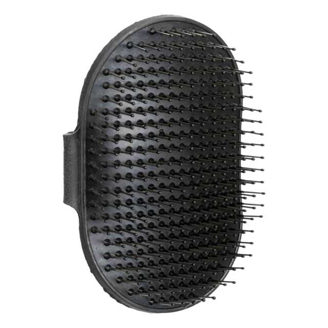 Trixie Köpek Bakım Fırçası 8x13cmÜst bölümünde elinize göre ayarlanabilir kısmı sayesinde çok rahatça kullanabileceğiniz kauçuk köpek tarama ve bakım fırçasıdır. Fırça kılları paslanmaz çeliktir, uçları yuvarlak ve yumuşaktır. Bu sayede köpeğinizi tararken etine dokunduğunuzda canı acımayacağı için size olumsuz tepki vermeyecek, tam tersi yuvarlak uçları sayesinde derisine masaj yaptığınız için taranmaktan çok zevk alacaktır.