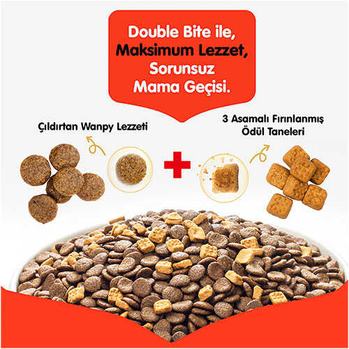 - Double Bite teknolojisiyle düşük ısıda fırınlanmış taneler, ağız yapısına uyum sağlar, mama geçişini kolaylaştırır.
